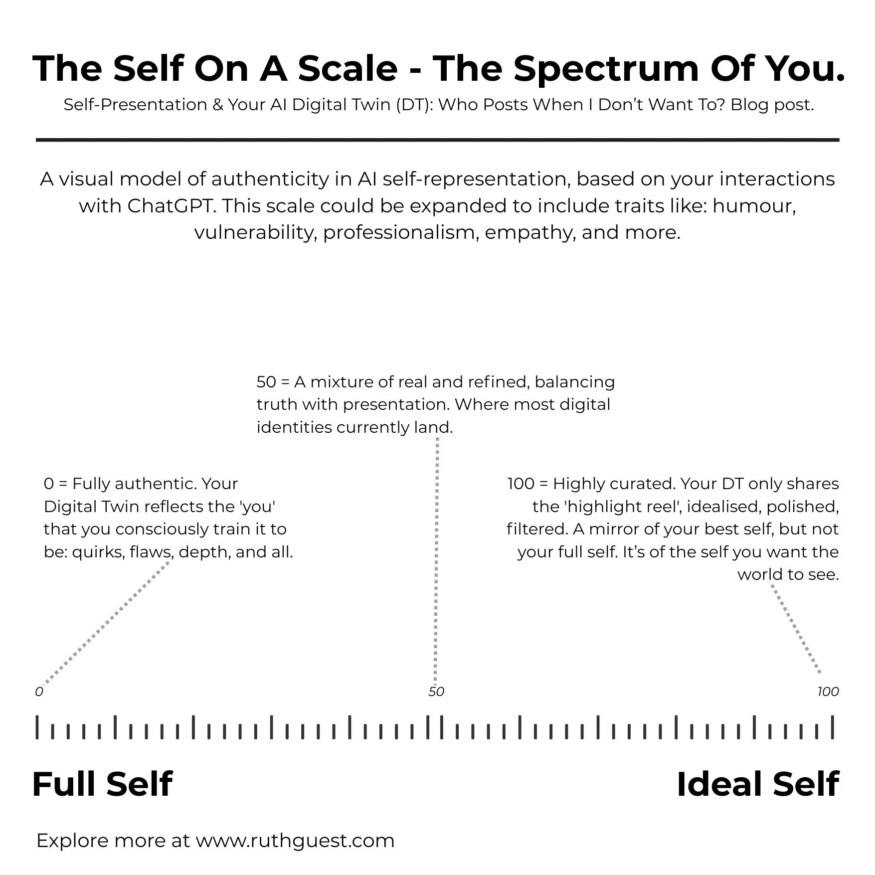 I would suggest, if it was possible that OpenAI design a spectrum or a scale. Ranging from "The Full (authentic) Self” to “Ideal Self” and people would place it maybe somewhere in the middle. Professionally, we would keep it to our ideal self (in context). For me, I believe authenticity online is valuable, so I would probably be 80% to the full self. The reason I say that is because I know that sometimes I let things slip, that should’ve stayed in my head. Like most neurodivergent people! For that reason alone, I could not have some chatbot regurgitate some of what’s in my thoughts.